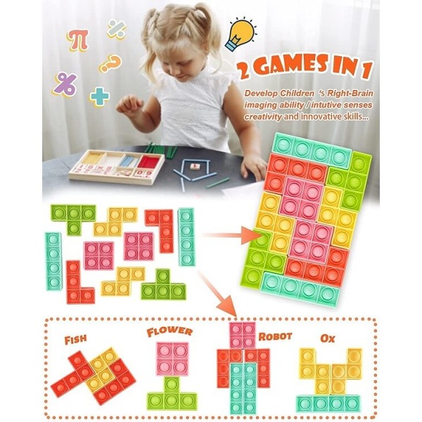 Το Fidget Bubble Pop είναι το απόλυτο αγχολυτικό παιχνίδι που σχεδιάστηκε για όλες τις ηλικίες για να σας βοηθήσει να εστιάσετε στη δουλειά, στην τάξη και στο σπίτι με στυλ. Τώρα σε συνδιασμό με τα τουβλάκια του Tetris για να φτίαξετε τα πιο απίθανα παιχνίδια.