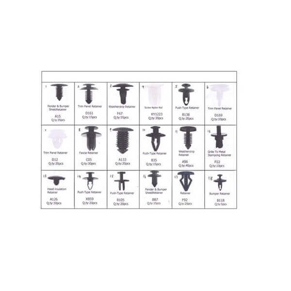 Η κασετίνα με 415 κλιπς συγκράτησης είναι κατασκευασμένη από υψηλής ποιότητας υλικό βαρέως τύπου, ισχυρό, ανθεκτικό στους κραδασμούς και δεν σπάει εύκολα. Κατάλληλο για κάθε επισκευή που χρειάζεται το αυτοκίνητό σας.