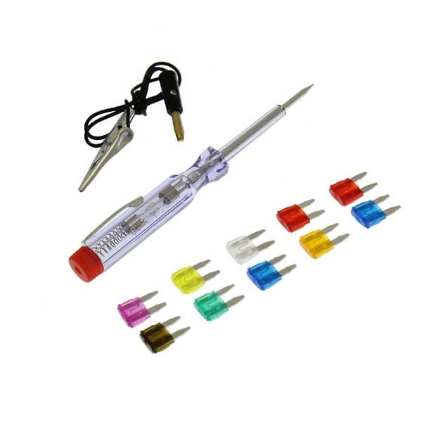 Σετ 10 ασφάλειες mini με δοκιμαστικό στυλό τάσης κυκλώματος για μοτοσυκλέτες, αυτοκίνητα και φορτηγά.