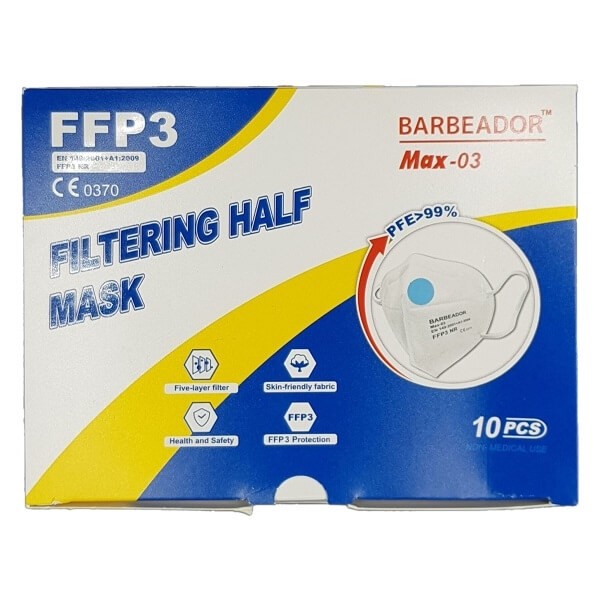 Μάσκα μιας χρήσης από την Κίνα και την εταιρία Jiangsu Liyu Razor Co. LTD, η MAX-03, με  πιστοποίηση CΕ, τύπου FFP3, είναι σχεδιασμένη για να παρέχει εξαιρετικά χαμηλή αντίσταση στην αναπνοή.