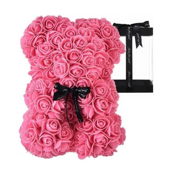 Αρκουδάκι Από Τεχνητά Τριαντάφυλλα 24cm - Teddy Bear Roses Ροζ