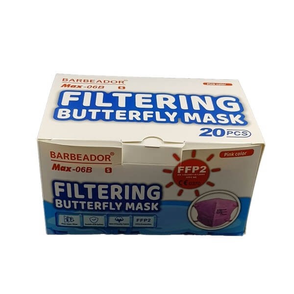 Παιδική μάσκα προστάσιας FFP2 τύπου πεταλούδας σε συσκευασία των 20τμχ σε χρώμα ροζ. Προσφέρει άνετη αναπνοή αλλά και υψηλή προστασία για την εξάπλωση αναπνευστικών νοσημάτων, όπως η λοίμωξη του Covid-19.
