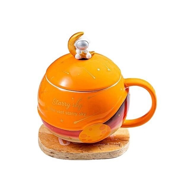 Κεραμική τρισδιάτατη κούπα με καπάκι και κουταλάκι αστροναύτη, για όσους αγαπούν το διάστημα, τα αστέρια και τους πλανήτες!