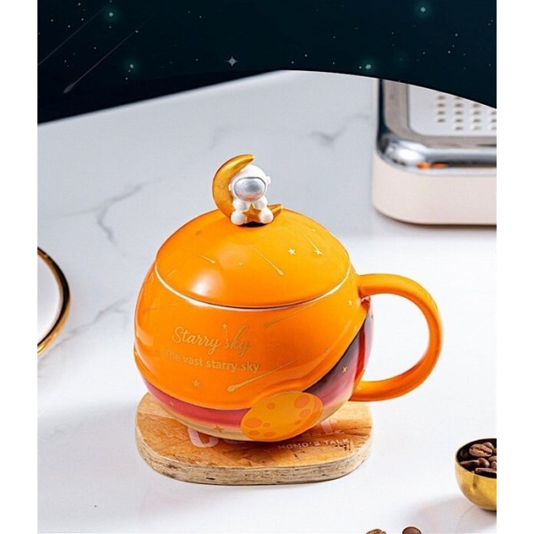 Κεραμική Κούπα 3D Starry Sky με Καπάκι και Κουταλάκι - Πορτοκαλί