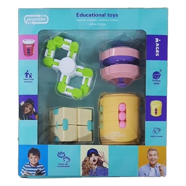 Το σετ περιέχει 4 fidget toys. Μεσαίας δυσκολίας, το σετάκι είναι ιδανικό δώρο για όλους όσους τους αρέσουν τα παζλ και οι γρίφοι και τα fidget toys.