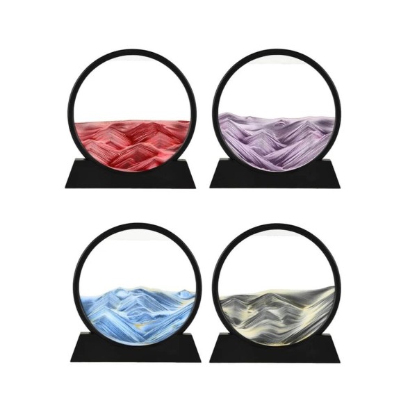 Θυμίζει κλεψύδρα που εδώ όμως σχηματίζει διάφορα σχήματα, διαφορετικά κάθε φορά. Γυρίστε το διακοσµητικό ανάποδα και θα βλέπετε την χρωματιστή άμμο να πέφτει και να σχηματίζει λόφους, βουνά, πυραμίδες