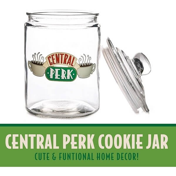 Το γυάλινο δοχείο για μπισκότα διαθέτει το εμβληματικό λογότυπο Central Perk και χωρητικότητας 1,8 λίτρων έχει αεροστεγές καπάκι για να διατηρεί τα μπισκότα εξαιρετικά φρέσκα.