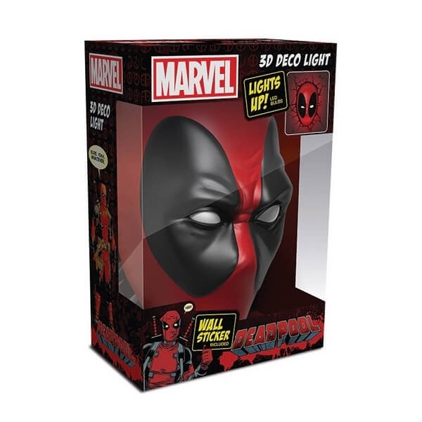 Γίνε κι εσύ ο Deadpool με την εκπληκτική μάσκα να φωτίζει το δικό σου δωμάτιο! Περιλαμβάνει 3D αυτοκόλλητο που προσδίδει στον τοίχο του δωματίου ένα ρεαλιστικό εφε ραγίσματος.