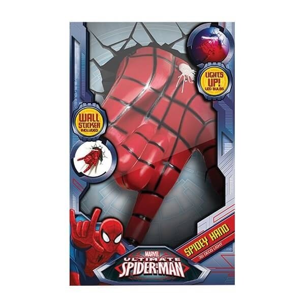 Τρόμαξε κι εσύ τους φίλους σου με το σχήμα τo χέρι του Spiderman που εκτοξεύει τον ιστό του και φωτίζει το δικό σου δωμάτιο! Περιλαμβάνει 3D αυτοκόλλητο που προσδίδει στον τοίχο του δωματίου ένα ρεαλιστικό εφε ραγίσματος.