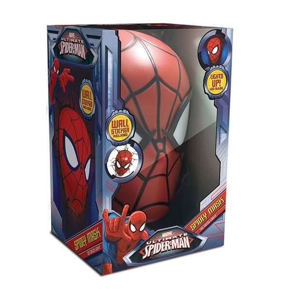Γίνε κι εσύ Spiderman με την φανταστική του μάσκα να φωτίζει το δικό σου δωμάτιο! Περιλαμβάνει 3D αυτοκόλλητο που προσδίδει στον τοίχο του δωματίου ένα ρεαλιστικό εφε ραγίσματος.
