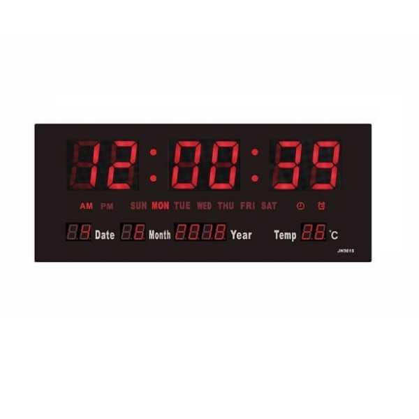 Ψηφιακό Ρολόι Τοίχου - Πινακίδα LED με Θερμόμετρο και Ημερολόγιο Πλαστικό Μαύρο 36x15