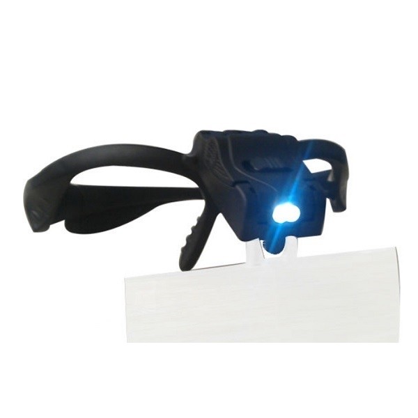 Μεγεθυντικός φακός κεφαλής προσαρμοσμένος σε σκελετό γυαλιών. Ιδιαίτερα πρακτικός για εργασίες που απαιτούν ελεύθερα χέρια. Κατάλληλος για μικροεπισκευές, ηλεκτρονικούς, ωρολογοποιούς κλπ.