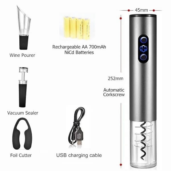 Πρόκειται για ένα ανοιχτήρι υψηλών προδιαγραφών το οποίο λειτουργεί με επαναφορτιζόμενες μπαταρίες. Έχει την δυνατότητα να ανοίγει τους φελλούς από τα μπουκάλια κρασιών μέσα σε 6-8 δευτερόλεπτα.