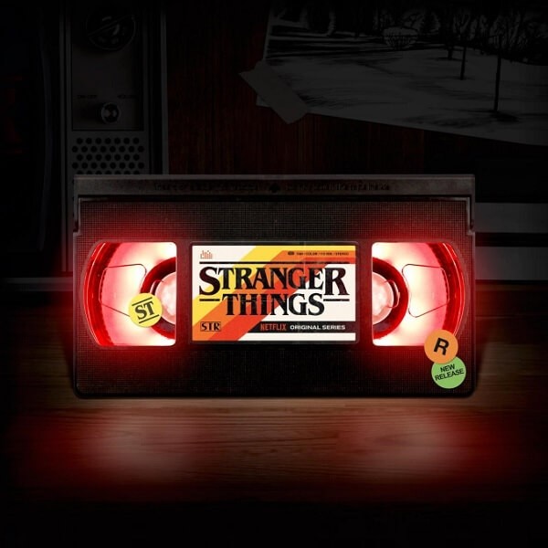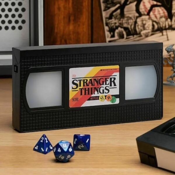 Πρωτότυπο φωτιστικό σε σχήμα βιντεοκασέτας εμπνευσμένο από την τηλεοπτική σειρά Stranger Things.