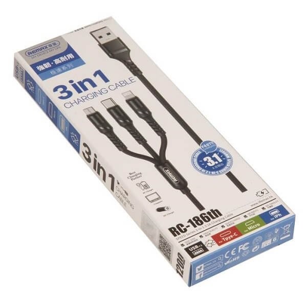 Με το 3 σε 1 USB καλώδιο θα έχετε στην διάθεση σας 1 βύσμα Micro USB (για τα περισσότερα smartphones), 1 βύσμα τεχνολογίας Lightning (iPhone 5 και πάνω) καθώς και 1 βύσμα για Type C.