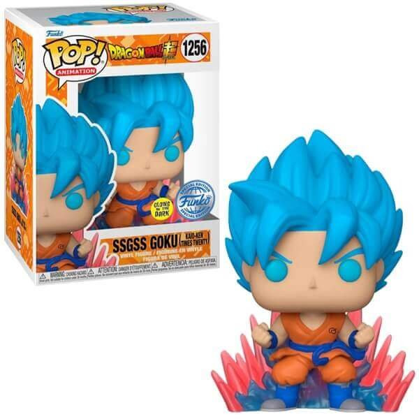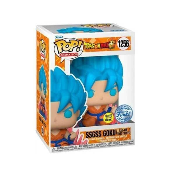 Αυθεντική φιγούρα Funko POP από βινύλιο του SSGS Goku (Kaio-Ken Times Twenty) από τo Dragon Ball Z σε ειδική έκδοση που φωσφορίζει στο σκοτάδι.