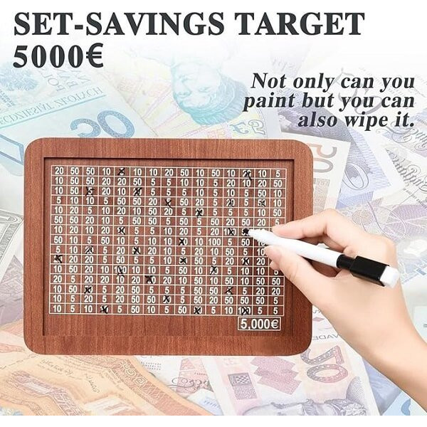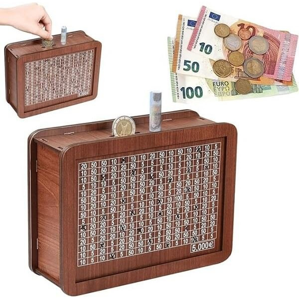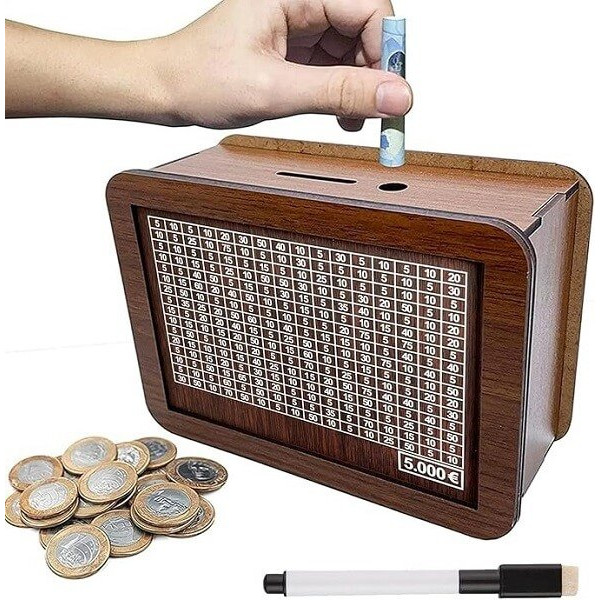Ξύλινος DIY Κουμπαράς με Στόχο Αποταμίευσης έως 5000 Ευρώ - Καφέ