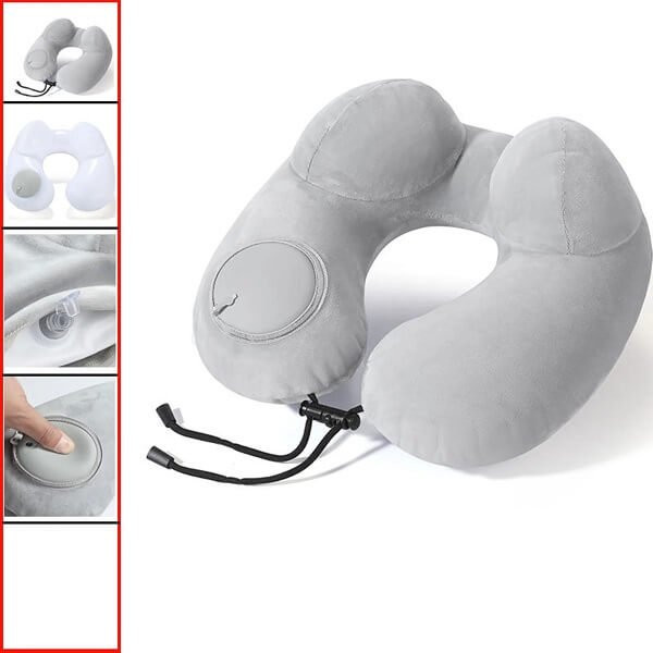 Το φουσκωτό μαξιλάρι ταξιδιού είναι η ιδανική λύση για άνετο και ξεκούραστο ύπνο σε αεροπλάνο, αυτοκίνητο, τρένο ή λεωφορείο. Χάρη στον εργονομικό σχεδιασμό του, προσφέρει σωστή στήριξη στον αυχένα και βοηθά στη χαλάρωση κατά τη διάρκεια μεγάλων ταξιδιών.