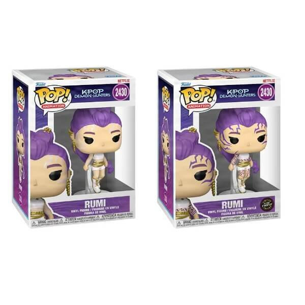 Αυθεντικές φιγούρες Funko POP της Rumi από το animation, KPop Demon Hunters. Η μία κανονική και μία Chase έκδοση που φωσφορίζει στο σκοτάδι.