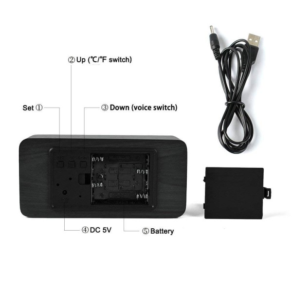 Σβηστό, φαίνεται σαν ένα απλό κομμάτι ξύλο αλλά μόλις ενεργοποιηθεί εμφανίζονται τα ηλεκτρονικά ψηφία που δείχνουν την ώρα, την θερμοκρασία και την ημερομηνία. Ταιριάζει σε κάθε στυλ διακόσμησης, στο σπίτι, στο γραφείο, στο κομοδίνο, στο σαλόνι και όπου αλλού επιθυμείτε.